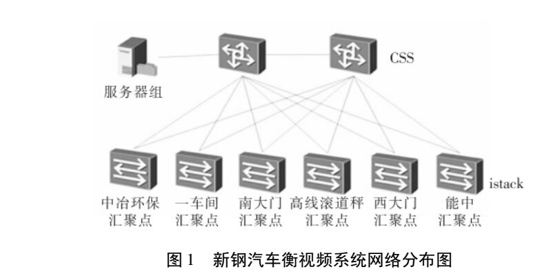 考慮到視頻占用帶寬比較大,不能采用環網模式,但又需要進行鏈路保護,因此新鋼地磅視頻系統采用 CSS( 集群) + iStack( 堆疊) 結合的技術進行組網。