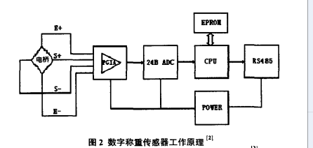 數字稱重傳感器工作原理如圖2所示,它由模擬傳感器、放大器、A/D轉換器、CPU、存儲器(內含補償軟件和自控軟件),電源和通訊模塊組成。一般的數字傳感器只有AD轉換和通訊功能,比如我公司的“DIGITAL LOAD CELLS”,更高級的智能型數字傳感器能自動對傳感器的零點、溫度、非線性、滯后、蠕變性能等進行數字化補償,最后輸出數字信號。比如”POWERCELL RLOAD CELLS”.