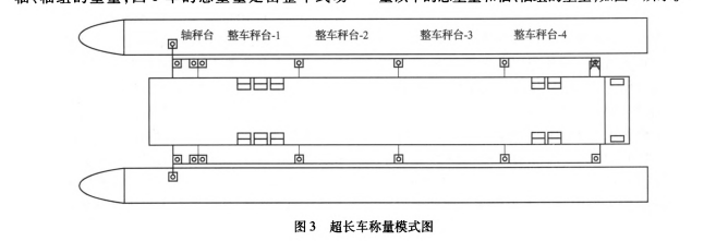 超長車稱量模式是指當某一車輛的長度大于秤臺的長度時,組合式動態地磅采用特殊的算法來稱量該車的總重量和軸、軸組的重量,如圖3所示。