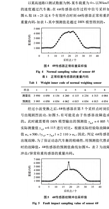 利用此方法進行整車式地磅故障診斷,不僅能夠有效地區分傳感器故障和傳感器正常波動,還能通過 DBN 訓練模型預測的故障傳感器的輸出代替故障值,保證地磅的正常使用。